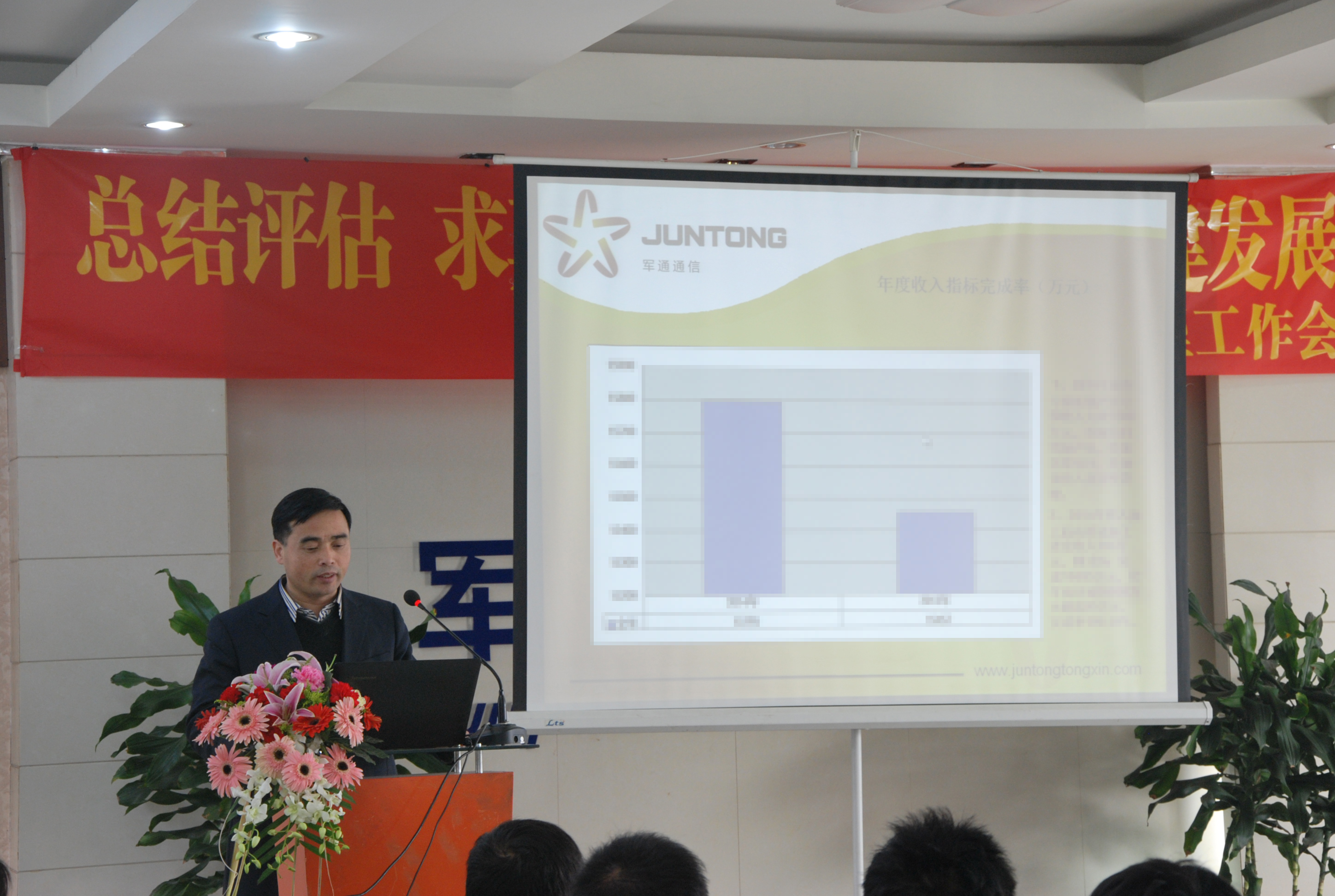 随后,公司董事长张志强作重要发言。张董指出, “在平总的带领下,军通上下一心,圆满完成了2014年经营管理目标任务,成功实现了扭亏为盈,成绩有目共睹!感谢军通全体同仁的努力!”接着,张董强调,“2015年公司须从制定战略目标,发挥军通优势;结合市场需求,增补优势资质;整合综合资源,提升品牌形象等方面继续努力,争取更大的成绩。”